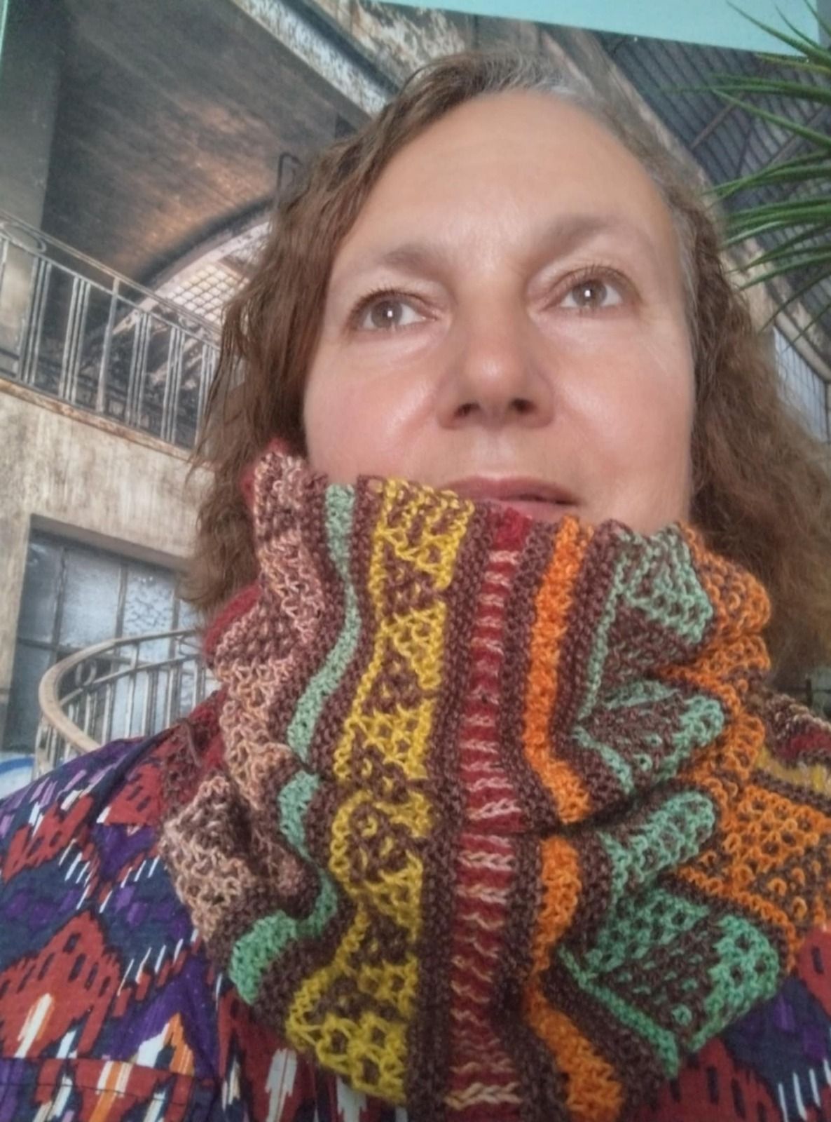 J'ai aussi terminé mon col "les coluleurs du vent" très coloré ce col mais je suis contente du rendu